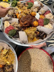 Family and community play a key role in Ethiopian Christmas celebrations. Traditional food, especially a spicy chicken stew served with injera, is prepared for the occasion. Hospitality is central: “We invite relatives, neighbors, anyone — even people who might be alone,” Kasmai says.